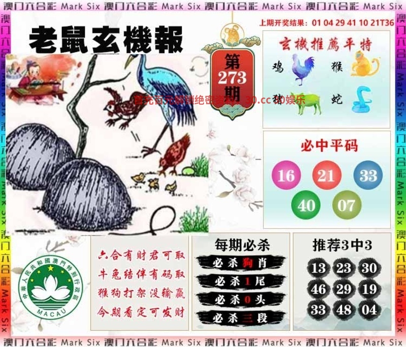 273期九肖:猪狗马龙羊虎牛鸡鼠 |